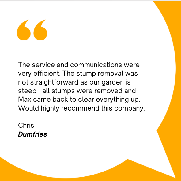 We offer QUICK & EFFICIENT tree stump removal across Central Scotland, Southern Scotland and Northern England.